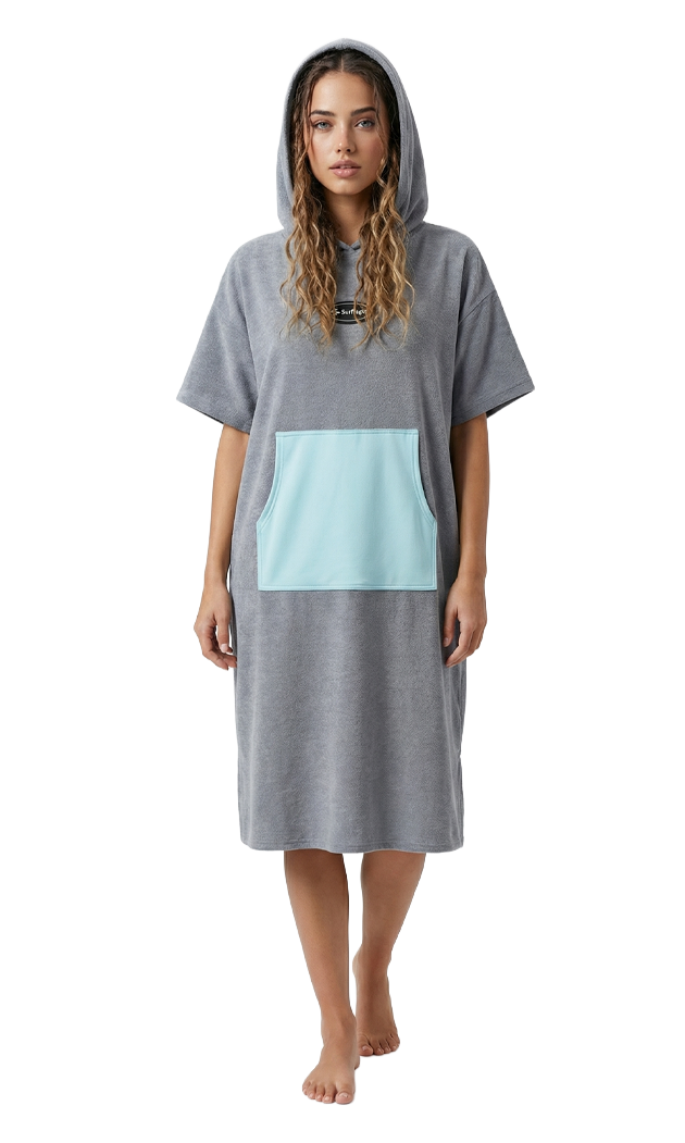 Il poncho surf – grigio è molto più di un semplice asciugamano: è il tuo spogliatoio mobile personale. Progettato per la massima praticità, questo poncho con cappuccio offre privacy, calore e comfort durante il cambio all’aperto. Che tu stia surfando, nuotando, campeggiando o viaggiando, ti mantiene asciutto, coperto e pronto per la tua prossima avventura.