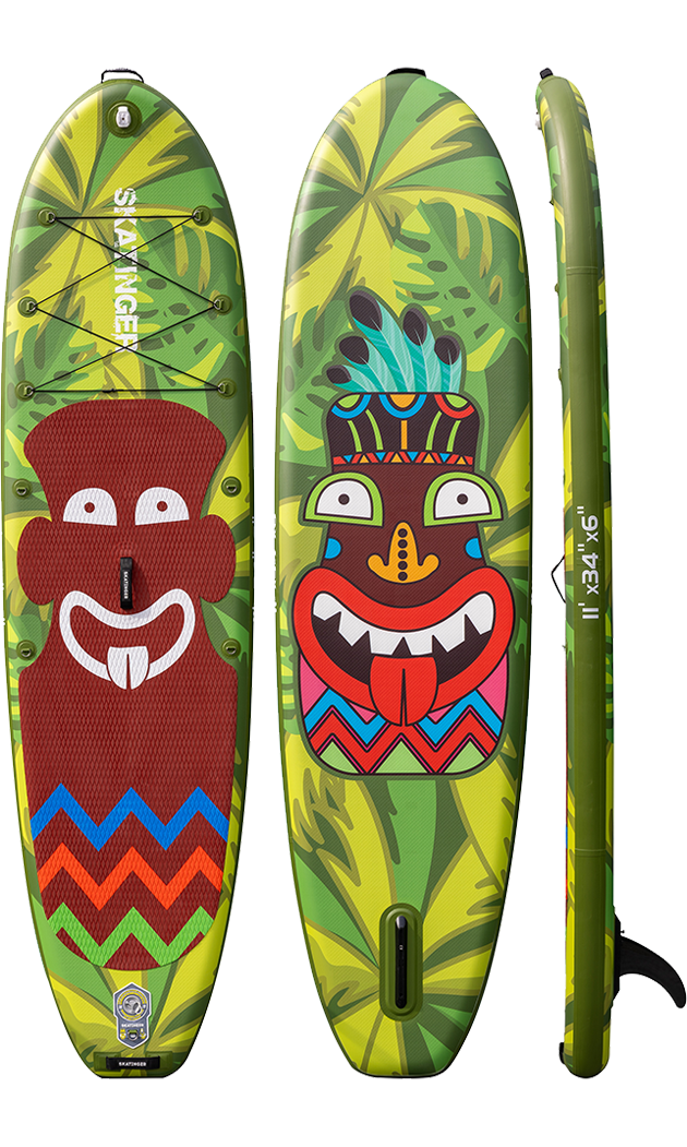 La tavola SUP gonfiabile Crazy Tribe di Skatinger porta un design audace e un’energia giocosa in ogni esperienza sull’acqua – perfetta per pagaiate ricreative, touring leggero o momenti di divertimento in famiglia. Con una lunghezza di 335 cm, una larghezza di 86,4 cm e uno spessore di 15,2 cm, offre stabilità affidabile e ottima galleggiabilità per un’ampia gamma di utenti.
