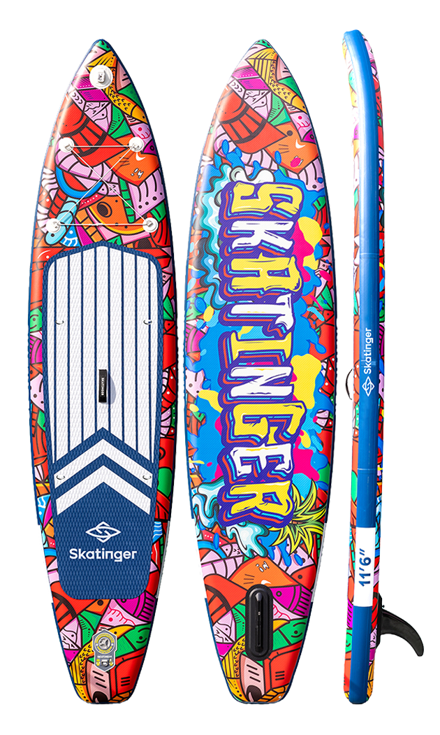 La Graffiti Red SUP della collezione Skatinger è una dichiarazione audace di creatività e libertà sull’acqua. Progettata per chi non vuole passare inosservato, questa tavola combina uno stile vibrante con prestazioni solide. Con una lunghezza di 350,5 cm e una larghezza di 81 cm, offre il perfetto equilibrio tra stabilità e manovrabilità, ideale per pagaiate rilassate, percorsi urbani o esplorazioni costiere.