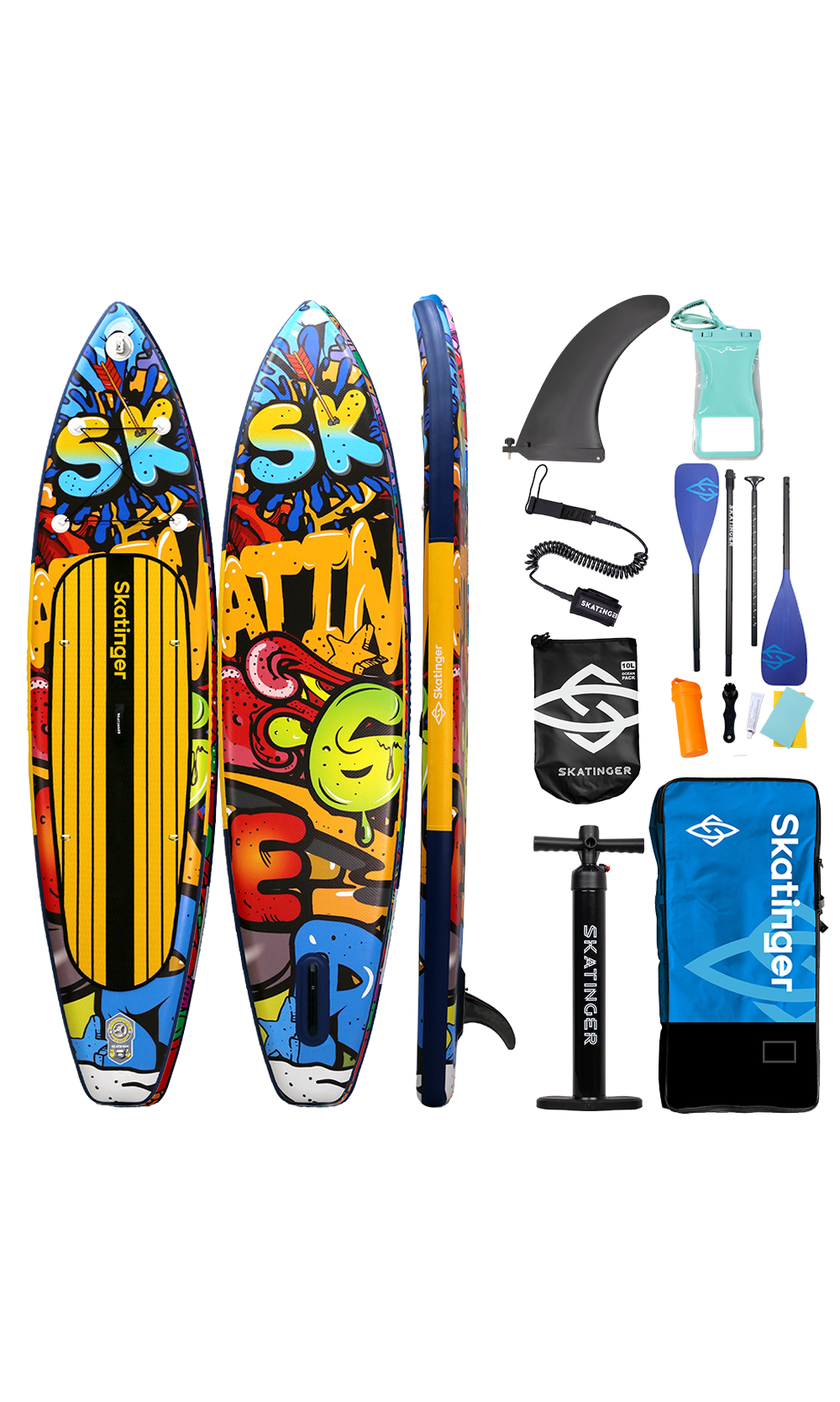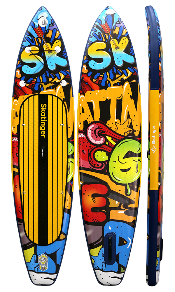 La tavola SUP Graffiti Yellow fonde un’attitudine urbana con prestazioni touring di alto livello. Con una lunghezza di 350,5 cm e una larghezza di 81 cm, offre un eccellente equilibrio tra velocità e stabilità, perfetta per chi vuole distinguersi mentre scivola tra baie, fiumi o laghi. Ispirata a murales vibranti e tratti pop-art, è pensata per chi vive colore, movimento e libertà.