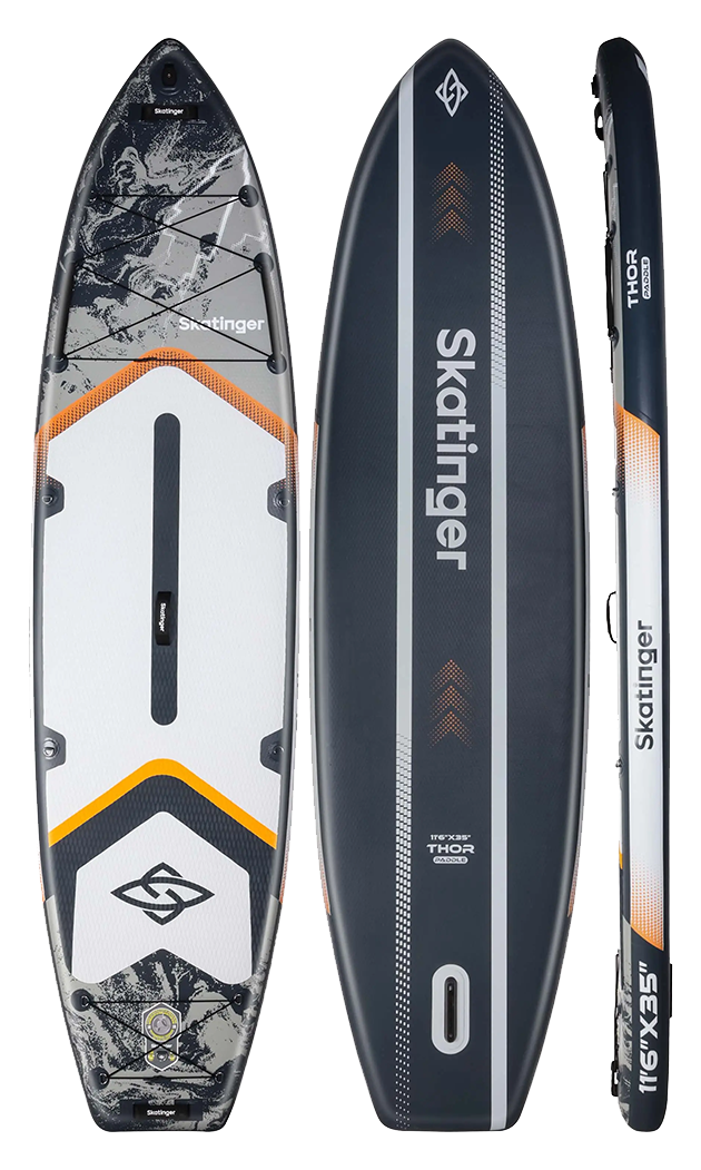 Alcune tavole paddle sono fatte semplicemente per galleggiare. Thor è fatto per dominare l’acqua. La tavola paddle gonfiabile Skatinger Thor è progettata per rider che desiderano maggiore stabilità, più spazio e più libertà sull’acqua. Grazie alla sua costruzione robusta e alla forma sicura e decisa, Thor rimane solida, stabile e reattiva sia mentre scivoli su un lago tranquillo, sia mentre pagai lungo la costa o condividi la tavola con un partner o un animale domestico.